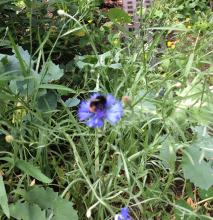 Auch im Gemeinschaftsgarten Oberkassel blüht und summt es. Es gibt einen Blühstreifen mit Wildblumen und zwischen den Beeten immer wieder bunter Tupfer mit Mohn, Malve, Phacelia. Ein Totholzlager und Hummelnest laden ein zum Nisten...